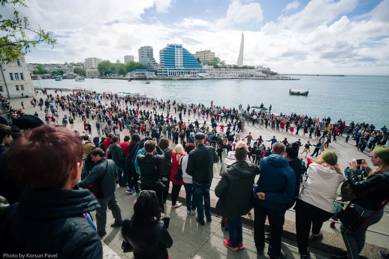 Флешмоб «За Победу танцуй до победного!» организовывается командой Севастопольского Бала в пятый раз. В предыдущие годы танцевальная акция проводилась в самом центре Севастополя – на живописной набережной Корнилова. За годы существования флешмоба в нем участвовали сотни пар из Севастополя и других городов Крыма и России. Вальсами, кадрилями и польками любовались тысячи зрителей: искренняя и душевная акция неизменно находила отклик в сердцах жителей и гостей города-героя. В этом году танцевальный флешмоб состоится в абсолютно новом формате — впервые он пройдёт онлайн.