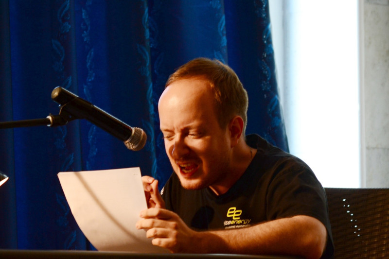 В который раз кульминацией и безусловной вишенкой на торте стало выступление журналиста популярного севастопольского интернет-издания FоrPоst Арсения Веденина с произведением «Культурка: страшная хроника одной карьеры». Это была не просто авторская читка, а миниспектакль! «Культурка…» — это сплошная сублимация внутренних переживаний Арсения и вместе с тем эмоциональное повествование о прозе жизни, о невозможности существования человека в атмосфере тотальной лжи и лицемерия.