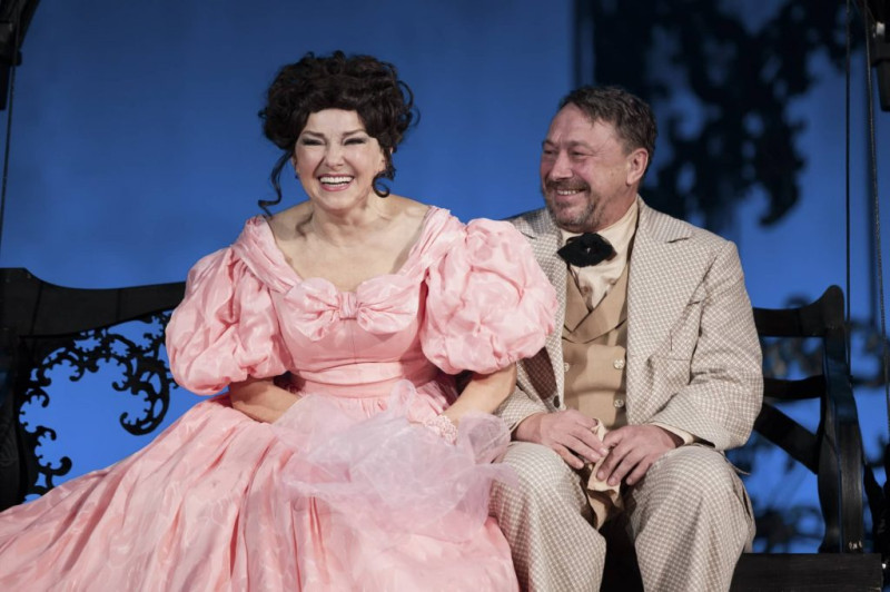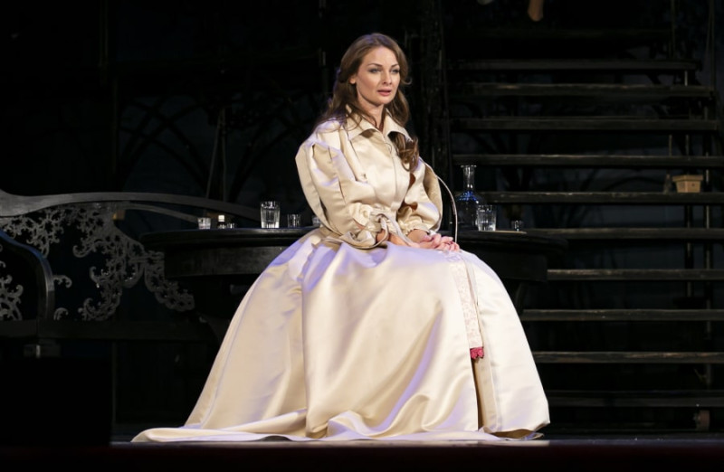 Честно говоря, не припомню ни одного «Месяца в деревне» (а я видела постановки Екатерины Еланской в Театре имени Ермоловой, Анатолия Эфроса в Театре на Малой Бронной, Евгения Марчелли в Театре имени Волкова), в котором костюмы главных героинь играли бы такую важную роль, как в севастопольском. Для мужчин Ника Брагина создала одежду умышленно лаконичную, летнюю, парусинковую. А для женщин, по слову Тургенева, – «пахучие платья», которые гармонично вписались в общий сценический рисунок, даже стали эмблемой чувств протагонисток. Фасоны обольстительных нарядов решены и в пышном стиле середины XIX века, подсказанном полотнами Франца Винтерхальтера или Пимена Орлова, и в изысканной манере начала XX столетия, почерпнутой в журналах мод или у легендарной Надежды Ламановой. Облик Веры Александровны подчас напоминает Полину Виардо с портрета Тимофея Неффа. А Наталья Петровна буквально дразнит роскошью сексапильных туалетов.