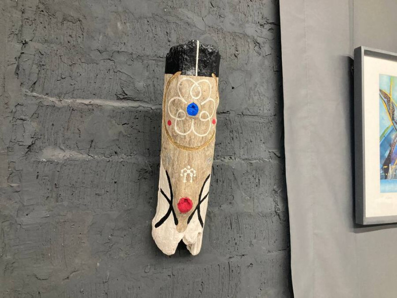 Кроме того, в экспозиции представлены арт-объекты обоих художников. В частности, работа Даши представляет собой руку создателя, держащей свиток. Свиток — это человеческая жизнь. Мы не знаем, что будет прописано в ней. Знаем, что только уже было. И если заглянуть в свиток, то можно увидеть силуэт человека, который присутствует, в принципе, во многих работах художницы, и может олицетворять любого человека.