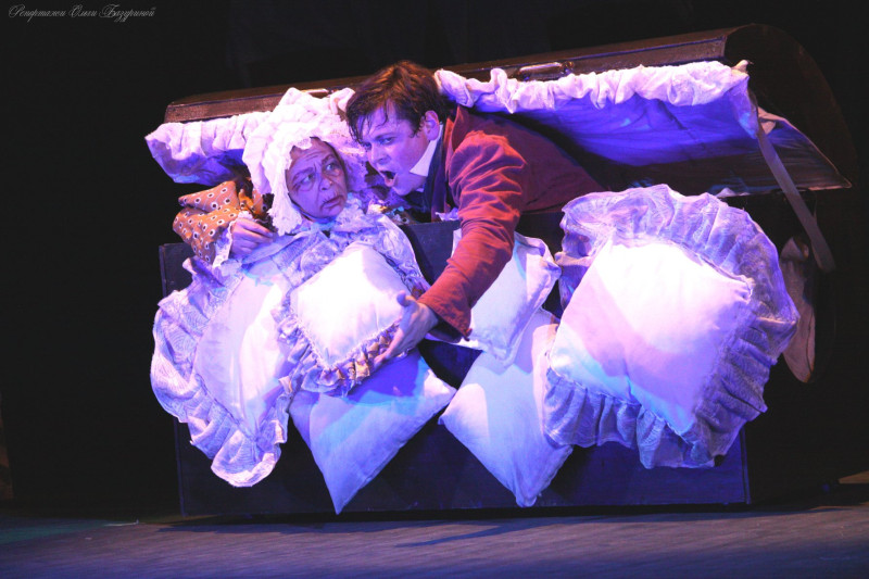 И вот «Чичиков» снова на сцене СевТЮЗа! Причин для тревог у режиссера-постановщика было достаточно — прежде всего, конечно, это ввод четырех новых актеров. В том числе на заглавную роль. Чичикова теперь играет Игорь Цветков, Собакевича — Владимир Соловьев, полицеймейстера — Степан Сковородин, жену Манилова — Лина Ясайте.