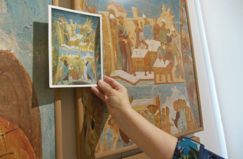 «Фрески и раньше фотографировали, однако без художественного подхода и только ночью, чтобы избежать влияния переменчивого дневного света. Юрий Холдин увидел при какой освещенности можно получить колористическую полноту. Она раскрывается в полдень, когда температура света составляет 5500 К. В это время теплые и холодные цвета «не спорят» друг с другом», — рассказала Екатерина Данилова.