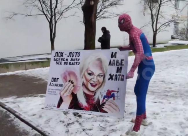 Не менее интересно было возле здания Верховного суда. Пока журналисты следили за исходом дела (сторона Долиной настаивала на закрытом заседании, но судьи отказали), на улице стояли с карикатурами и устраивали юмористические пикеты. Неизвестный мужчина хотел попасть на слушание в костюме Человека-паука. Это отсылка к паспорту мошенника, который обманул Ларису Долину: в его подложный паспорт была вклеена фотография актёра Тома Холланда, который сейчас играет этого супергероя в фильмах Marvel.