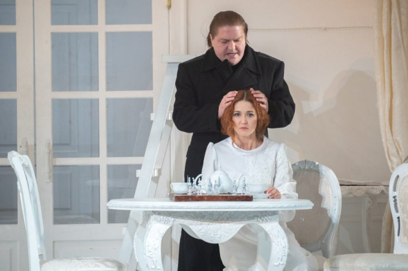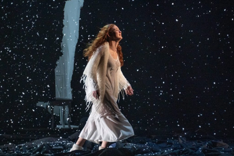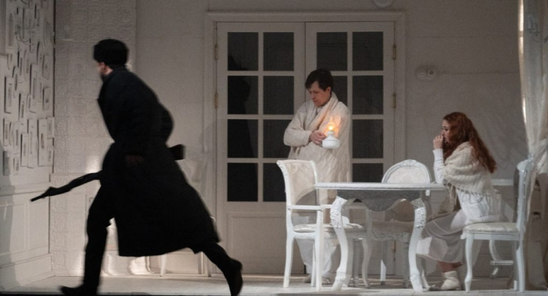 «Спектакль «Белая гвардия» по пьесе «Дни Турбиных» М.А. Булгакова предполагает полное погружение в действие. Пусть сначала так не покажется: мы наблюдаем за семьёй Турбиных, которая в своей «коробочке» с кремовыми шторами ведёт тихую жизнь. Но в следующий миг мы оказываемся внутри боевых действий. Вместе с героиней идём по улице, осыпаемой снегом, когда убитая горем, она выбегает наружу в поисках утешения.