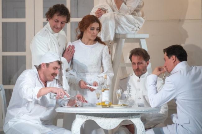 Главные герои одеты в белое, Тальберг и юнкера – в чёрное. По ходу действия понимаешь, что такое разделение должно быть и в жизни: нужно уметь отличить доброе от худого. Но нельзя делить на белых и красных. Кстати, в спектакле и нет такого разделения. Есть мир и война – два полярных состояния человечества, «а что сверх этого, то от лукавого»».
