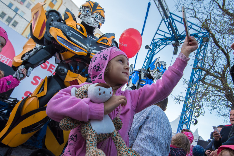 Праздничная программа стала отличным подарком для сотен детей и взрослых. Малышей развлекали инопланетные роботы Трансформеры, а также знакомые каждому из них Маша и Медведь. Настоящую бурю эмоций у ребятни вызывал гигантский полярный медведь, прогуливающийся по аллее и охотно фотографирующийся с гостями праздника.