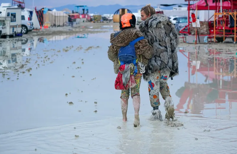 Но в этот раз что-то пошло не так, и вместо песчаной бури в пустыню Блэк-Рок нагрянула обычная. 1 сентября по фестивалю ударил мощный ливень, который превратил всё вокруг в кашу из грязи. Всего за несколько часов на участников «Burning Man» вылилась трёхмесячная норма осадков. Дороги оказались размыты, палаточные городки — затоплены.