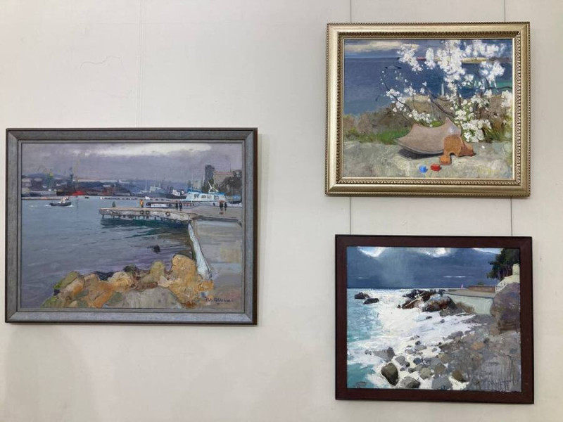 Конечно, основной лейтмотив выставки — крымская тематика, но представлено и полотно, написанное художником в селе Дивноморское Краснодарского края. Но в целом живописная география ограничена мотивами полуострова: Солнечная долина, село Юркино под Керчью с видами на Азовское море, Ялта, село Соколиное и, конечно, родной Севастополь.