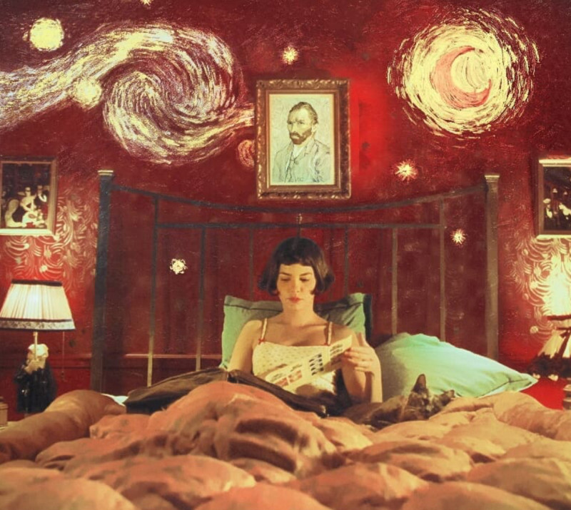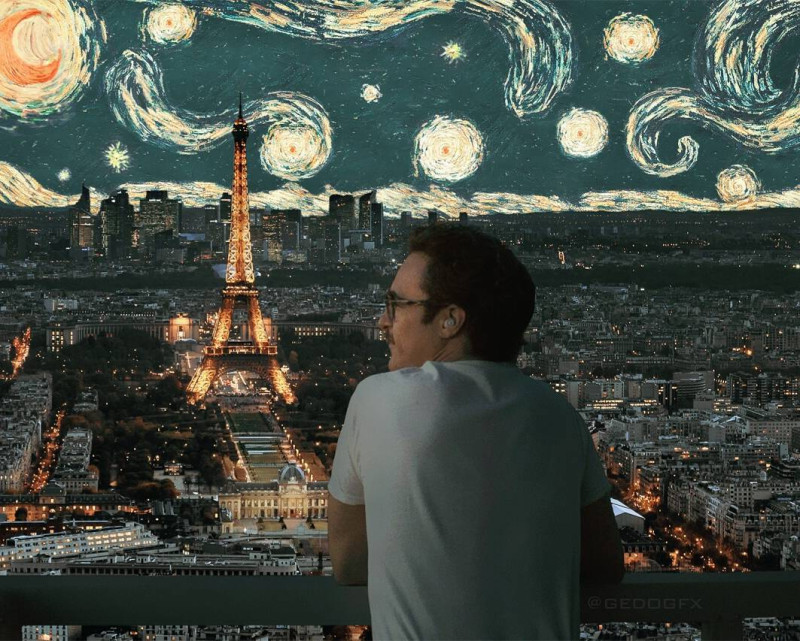 Создатель gedogfx, похоже, не стремится войти в какой-нибудь учебник по мемологии. Его иллюстрации посвящены одной теме — любви. Герои самых пронзительных романтических историй в фильмах, таких как «Вечное сияние чистого разума», «Она», «Перед рассветом», «Назови меня своим именем», «Трудности перевода», оказываются в пространстве полотен Ван Гога, Эдварда Хоппера, Густава Климта и Клода Моне. А порой место в кадре занимают сами художники.