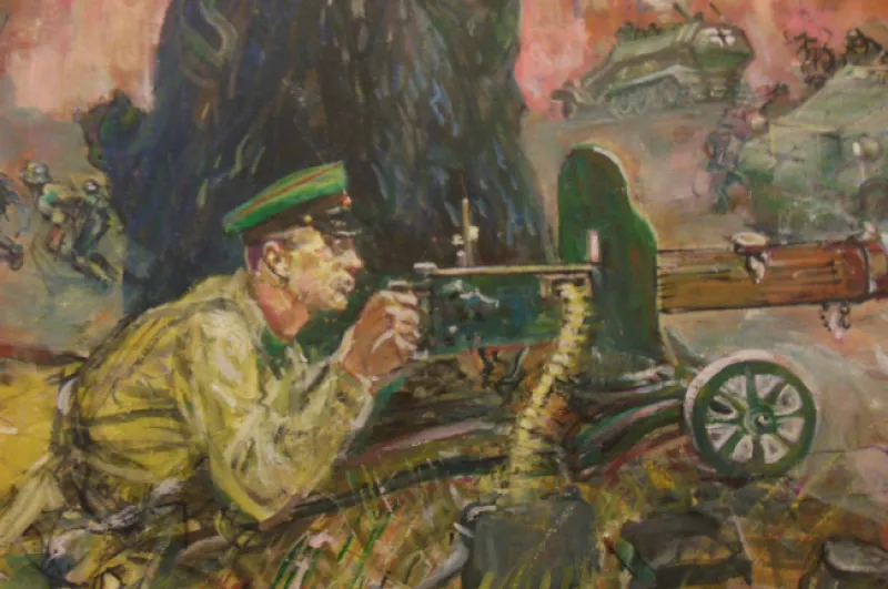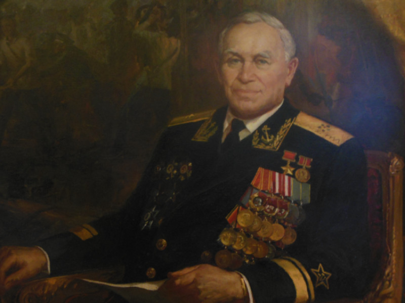 Задумчивым взглядом на зрителя смотрит Герой Советского Союза Василий Иванович Быков. Контр-адмирал прошел Великую Отечественную войну, участвовал в войне против Японии, советско-китайском пограничном конфликте на Даманском острове, служил в Сирии во время арабо-израильской войны.