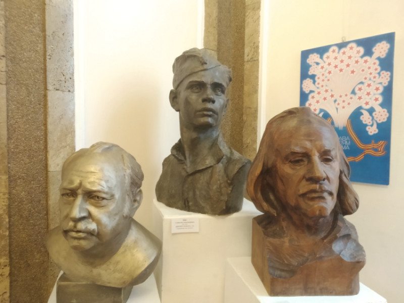 Особое внимание привлекают к себе и скульптурные работы Станислава Чижа, среди которых портреты участников войны Виктора Толочко, Григория Поженяна, портрет Солдата.