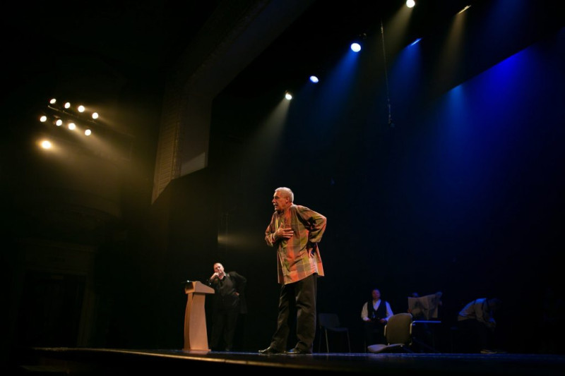 Премьерный спектакль внезапно исполнил большую давнюю мечту одной из зрительниц премьерной постановки — побывать на сцене во время спектакля. Лара Гаврисенко стала одной из восьми присяжных заседателей судебного процесса.
