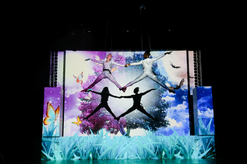 «Эксклюзивность нашего шоу состоит в том, что здесь не просто танцуют, а бегают по сцене, летают на резинке, выполняют фантастические трюки «на коромысле». — рассказывает руководитель и идейный вдохновитель коллектива Дмитрий Пастухов. — К слову, не каждый театр в России способен сделать нечто подобное».