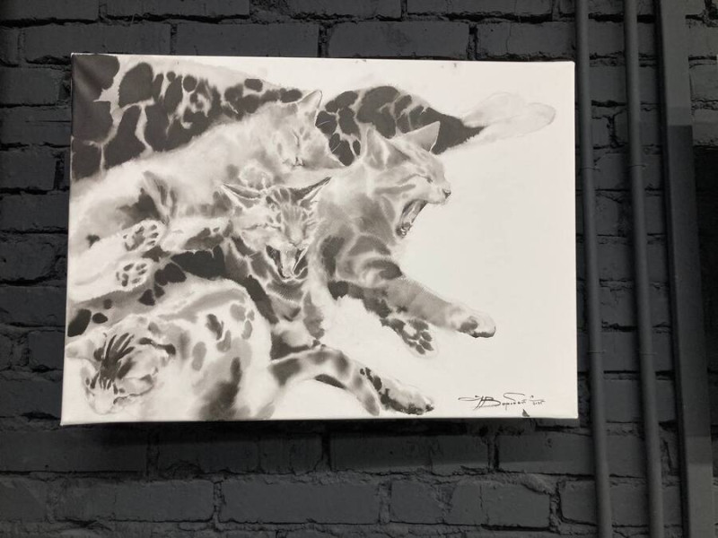 Выставка (6+), посвящённая самым популярным героям домашнего уюта — котам и кошкам — открылась в Севастополе. Два художника, Ирина Воробей и Александр Воцмуш, представили в арт-пространстве «10й ДОМ» совместный проект, объединивший акварельную нежность и иронию в изображении усатых-полосатых.
