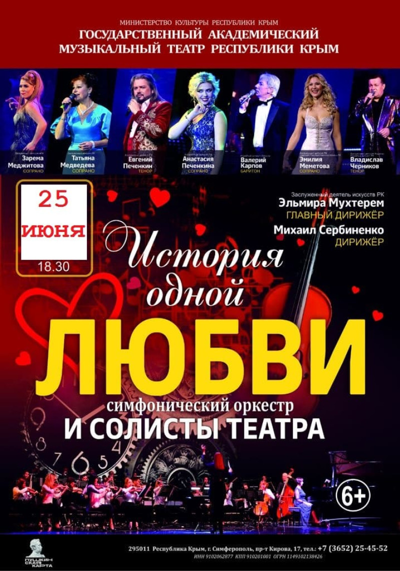 Концерт «История одной любви» — новая музыкальная программа Государственного академического музыкального театра Республики Крым в сопровождении симфонического оркестра театра.