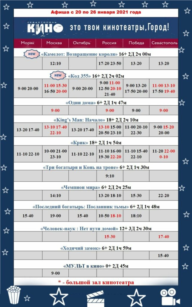 Афиша Севастополькино. Общее расписание с 20 по 26 января