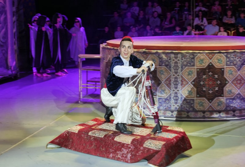 Вместо ковра-самолёта — ковёр-самокат, а находчивость главного героя не знает границ. К примеру, Аладдин предлагает Джинну спрятаться от злого колдуна в кувшине. К чему привёл такой ход конём? Приходите на спектакль елизаровцев, чтобы увидеть чудеса своими глазами.
