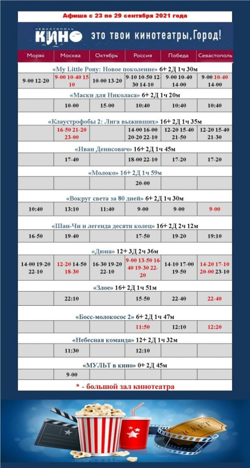 Афиша Севастополькино. Общее расписание с 23 по 29 сентября