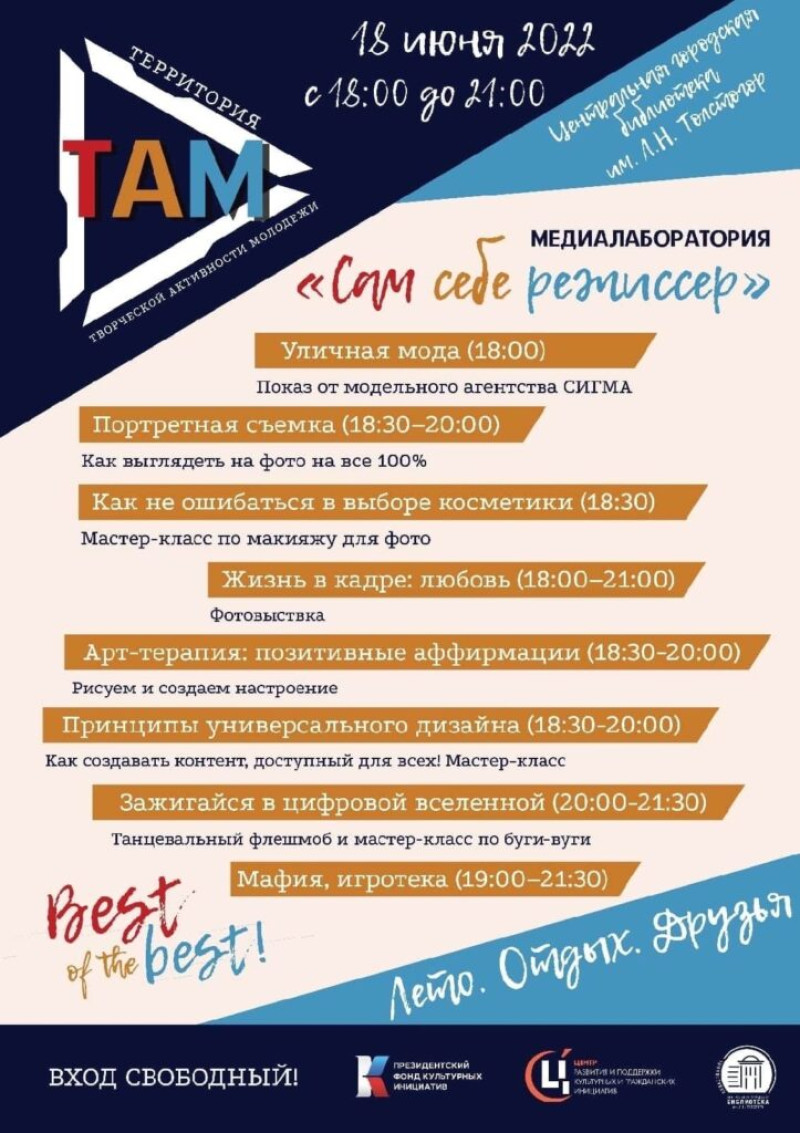 Уже в эту субботу приходите на медиа-лабораторию под открытым небом «Сам себе режиссёр».
