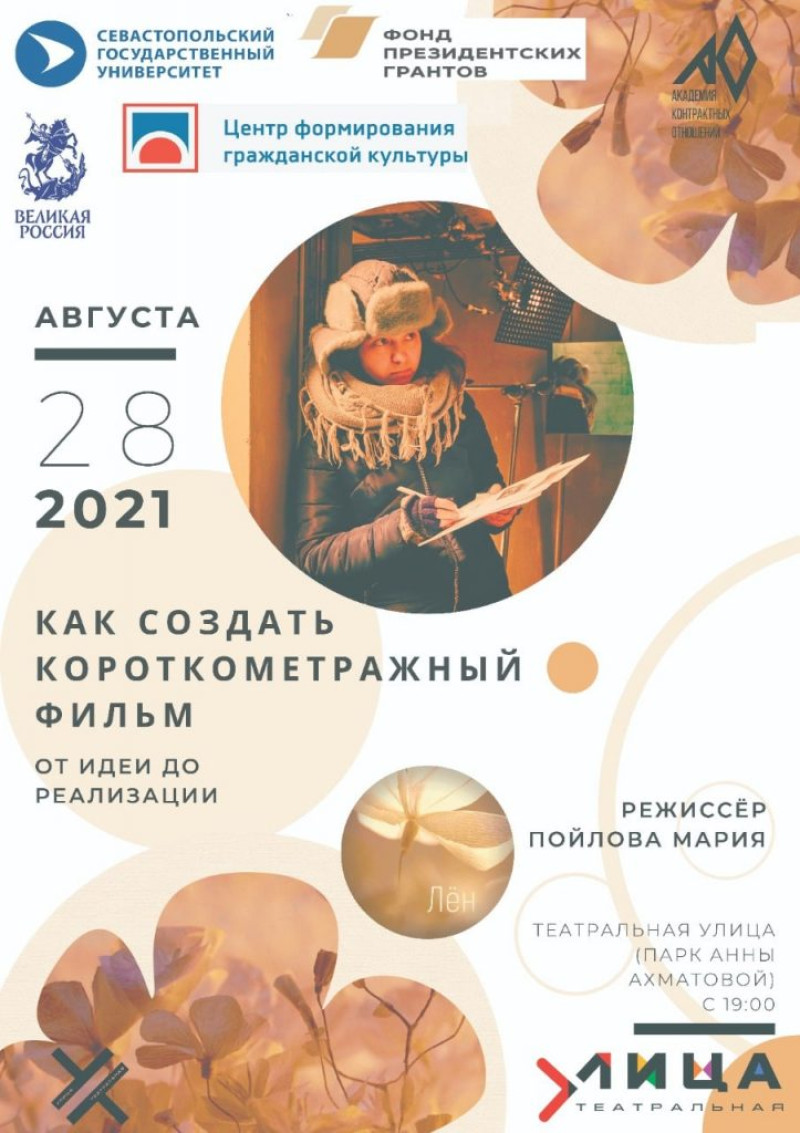 Как создать короткометражный фильм? Узнать все секреты — от идеи до реализации — вы сможете на творческой встрече-лекции. Её проведёт режиссёр Мария Пойлова под куполом «Театральной улицы».