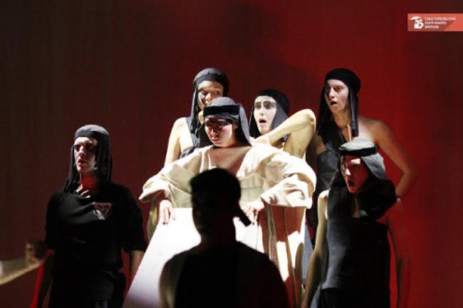 В спектакле «Прометей прикованный» актеры говорят на особом театральном языке. Греческий режиссёр и педагог Теодорос Терзопулос называет его «языком Диониса». Он отличается от языка русского психологического театра, к которому привыкли актеры и зрители Севастопольского ТЮЗа. Артисты произносят текст Эсхила, обращаясь не к партнёру, а к Дионису. Разговор на языке древнегреческого бога непрост и требует погружения, вовлечённости в действо.