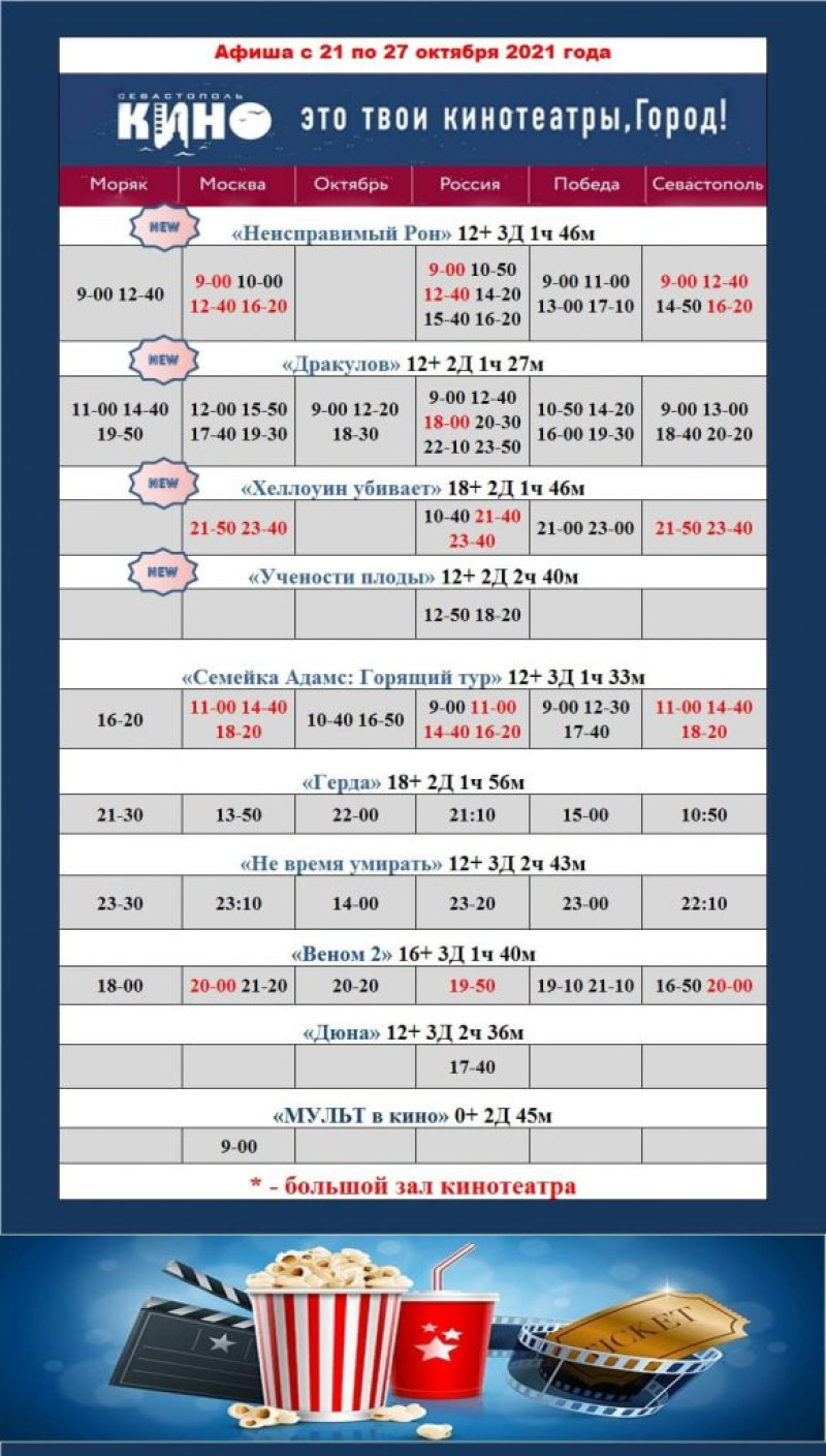 Афиша Севастополькино. Общее расписание с 21 по 27 октября