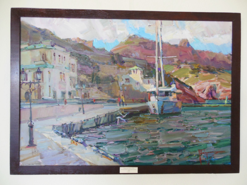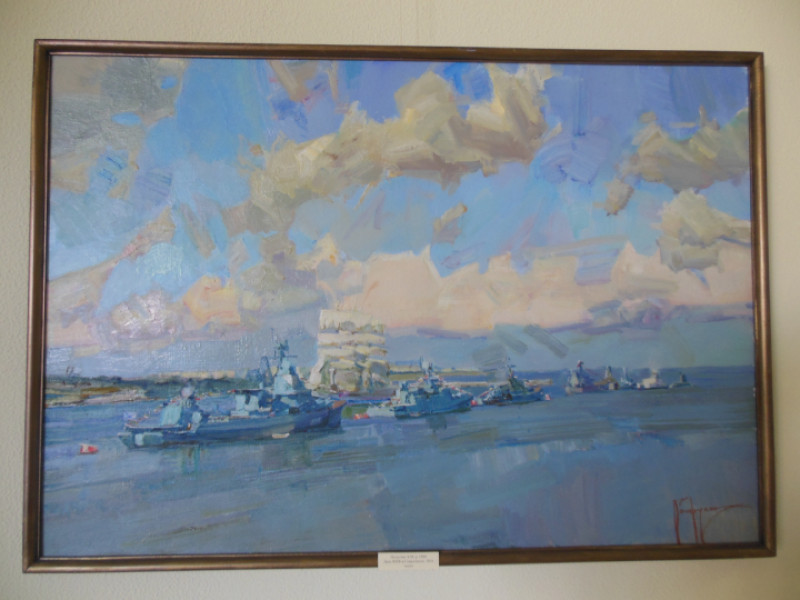 Работам художника Алексея Петрухина присущи и динамика композиции, и повышенное внимание к передаче света, оттенка цвета. Мазки художника также экспрессивны, как и у его коллеги – Николая Карпова. Они словно сражаются на холсте. Даже во внешне спокойных «штилевых» работах это не пропадает. На выставке Алексей Петрухин представил пленэрную живопись. Одна из его работ совсем недавняя – со Дня Военно-морского флота 2018 года.