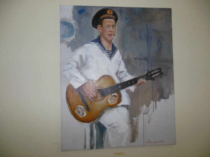 «Морские» картины Игоря Шипилина и Елены Вильчуковой окрашены светлой романтикой. Свою работу «Песня о Марусе» Елена посвятила своему отцу, который служил на флоте.