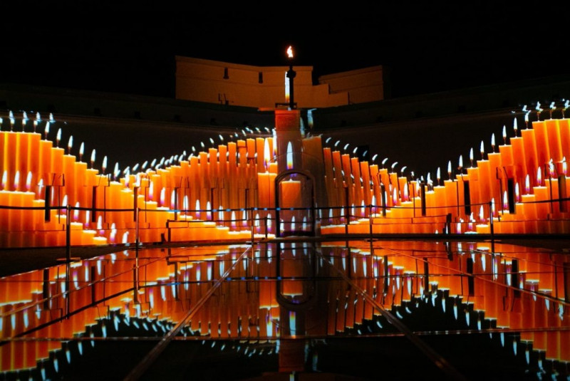 А уже вечером на стенах башни Корниловского бастиона показали световую инсталяцию.