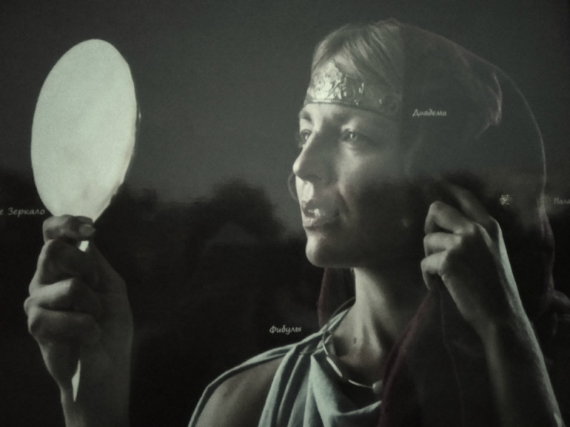 Ольга не только оказалась в объективе фотографа, но и написала историю своего персонажа и связала её с хорой Херсонеса, расположенной недалеко от проведения выставки.