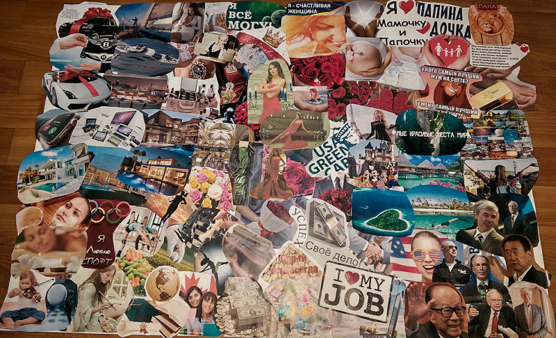 «Плакат желаний – это план на год, план на жизнь, — говорит Наташа Mailis. – Проблема большинства людей в том, что они не знают, чего хотят. На моих мастер-классах у многих участников нет никаких желаний, и это страшно. Я тогда убедительно прошу человека всё равно что-то выбрать для себя, найти, к чему стремиться».