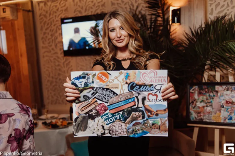 Принцип Наташи в работе с людьми прост и понятен – никаких замудренных схем и правил. Создание плаката желаний – это зов сердца, а оно всегда, как говорится, «глаголит истину». Очередной мастер-класс проходил в одном из лучших ресторанов Севастополя и Крыма — «Sea Grill». Каждой из девушек был дан белый ватман, клей-карандаш и огромный выбор самых различных картинок, из которых должен быть сформирован свой собственный коллаж мечты. Любовь, машина, деньги, роскошная квартира, путешествия по миру, успех в бизнесе, лидерство по жизни – участникам мастер-класса Наташи Mailis была представлена самая обширная палитра человеческих желаний и стремлений. Каждый выбирал из этого разнообразия свою мечту и постепенно яркие образы «человеческого счастья» превращали белое бездушное полотно в один большой мотиватор.