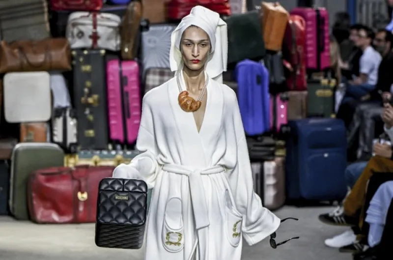 Итальянский колорит красуется на принтах с пикником на побережье или гусями. Их Аппиолаза дополняет сумками в виде бумажных пакетов (в этот раз там колоски), клатчем-пиццей и юбками с цветами флага Италии. Ну и стильными чемоданами, на которые модный дом наверняка сделает акцент.