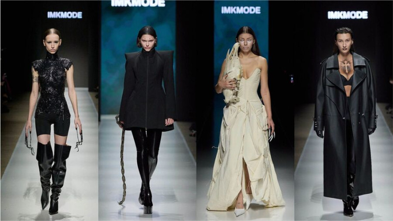 Поклонники Рика Оуэнса и Balenciaga наверняка будут ликовать при виде новой коллекции Imkmode. Мрачный стритстайл, пугающий макияж и перенасыщение готической эстетикой — всё на месте! Неся под мышкой череп и волоча по подиуму цепь, модели дефилировали в «гудроновых» костюмах, обтягивающих платьях с акцентными плечами, лакированных пальто и разорванных колготках. Некоторые образы Imkmode дополнили крестами. И если в одном случае он просто висит на шее, то в другом его словно приложили к покрытой сажей зоне декольте. Одно из самых эффектных шоу, которое показала Московская неделя моды 2024.