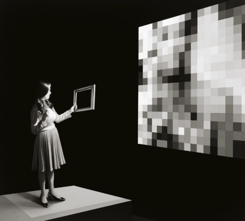 В своих гиперреалистичных картинах, выполненных маслом, он балансирует между живописью и фотографией, прибегая к цифровому формату, оцифровке изображения, использованию эффекта мозаики и тем самым обогащая оба вида визуального искусства. Воображаемые инсталляции на выдуманных выставках включают монохромные, обычно черно-белые полотна, а иногда файлы в формате jpg.