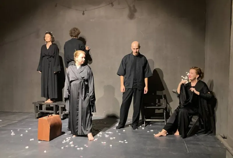 Ведь так проще донести до зрителя те непередаваемые словами настроение и смысл, которые считываются в книгах у японского писателя не дословно, а между строк, в атмосфере его произведений и в послевкусии от прочтения. Актёры танцуют и передают эмоциональную информацию через пластику тел. И это заслуга режиссёра по пластике Андрея Еронского. А ещё глубже погрузиться в уютное муракамиведение помогают сценография и режиссура Наталья Слепченко.