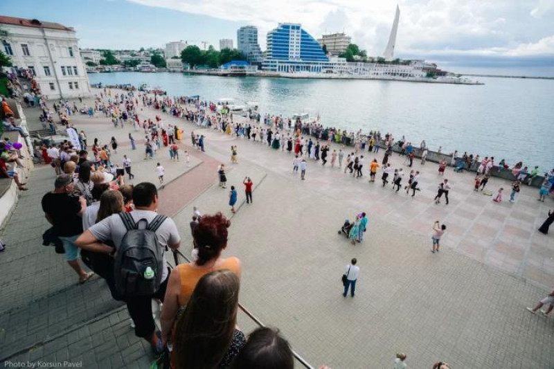 Участники мероприятия танцевали вальсы, московскую и русскую кадриль, сиртаки, а сотни собравшихся севастопольцев и гостей города поддерживали их аплодисментами. В программу юбилейной акции вошли семь танцев. Участники флешмоба разучили их на репетиции, которая прошла под открытым небом на панорамной площадке у театра им. Б. А. Лавренева.