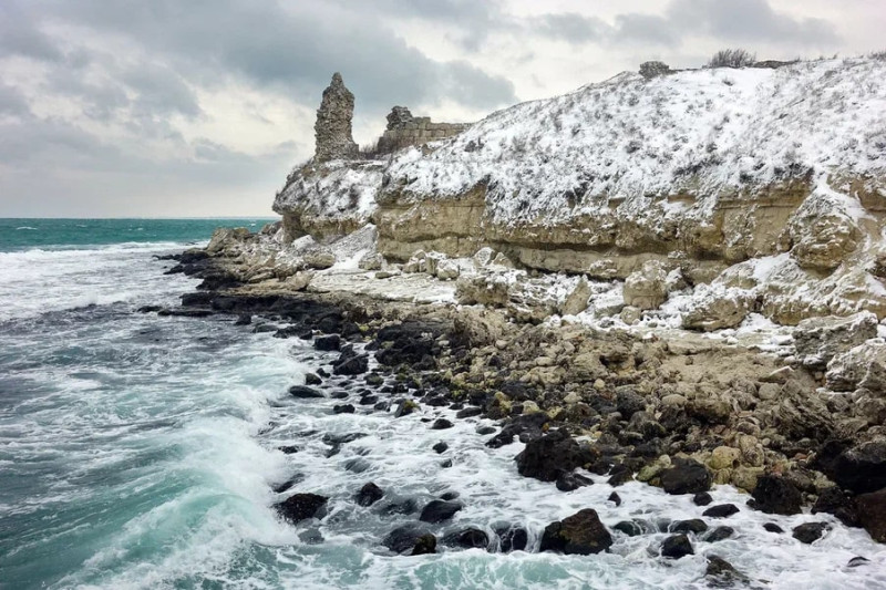 Снег является помощником фотографа — главное обозначено, второстепенное прикрыто. Это как нельзя лучше касается Херсонеса, где зимой особенно проявляются фактура и рисунок древнего города.