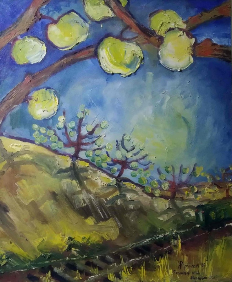 «Путь волхвов» Оксана Домнина создала специально для рождественской выставки музея имени Крошицкого, но пандемия внесла свои коррективы. Ещё три работы художницы— пленэрные—декабрь в Херсонесе, зимний Фиолент и красные виноградники осенью.