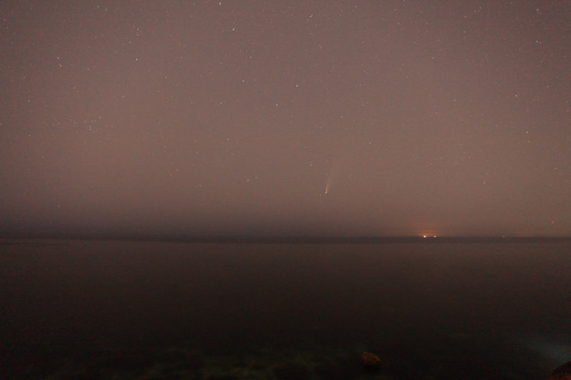 На одной из фоторабот автор запечатлел комету NEOWISE, пролетавшую в 2020 году.