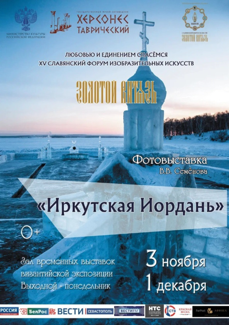 3 ноября в Зале временных выставок музея-заповедника «Херсонес Таврический» откроется выставка «Иркутская Иордань». На ней можно будет увидеть фотографии архитектора, создателя ледяных скульптур и фотохудожника Вадима Семёнова. Открытие приурочено к XV Славянскому форуму изобразительных искусств «Золотой Витязь» при поддержке Министерства культуры РФ и общественного движения «Культурный фронт». Также организаторы покажут одноимённый документальный фильм о проекте «Иркутская Иордань».