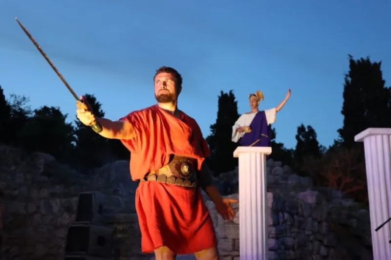 В восемь вечера привычный облик Херсонеса преобразился, и здесь начали работать четыре площадки для театрализованных представлений, которые перенесли зрителей в прошлое. Гости познакомились с утончённой эпохой Античности, загадочным Средневековьем, возрождением Херсонеса как археологического памятника в XIX веке и появлением в нём первого музея, а также с одним из важнейших событий в истории нашей страны – крещением князя Владимира на территории северного форпоста Византийской империи – Херсона (Корсунь русских летописей).