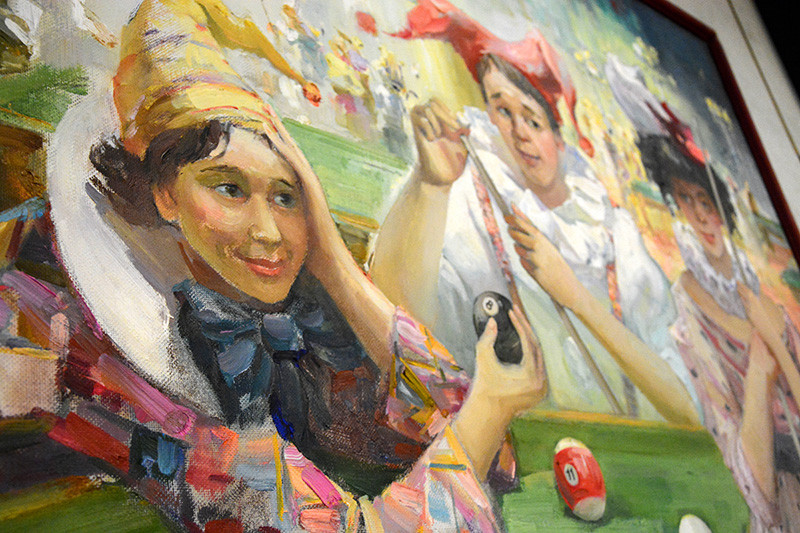 «Театр», «Поклонники», «Аншлаг», «Принцесса цирка», «Творческий дуэт», «Маленькая балерина» — все эти работы наполнены любовью и преклонением перед его Величеством Артистом. Тяжелый труд людей искусства отражен в картинах «Дорога», «Возвращение домой», «Дрессировщица».
