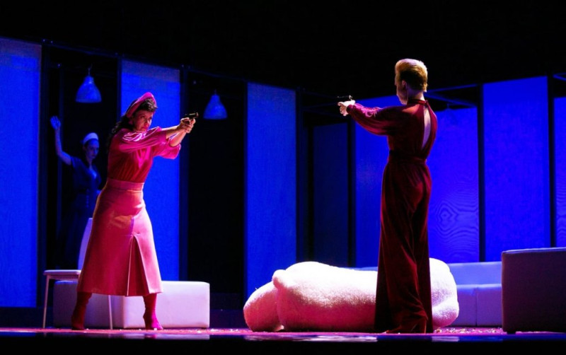 Массовые сцены с актрисами — яркими, пёстрыми, со своим характером, в которых каждая по-своему привлекательна и отталкивающа. В пластических фрагментах, их хореографию создала Ольга Зотова, они похожи то на дефилирующих моделей, то на коварных фурий, то на нежных и хрупких матерей.