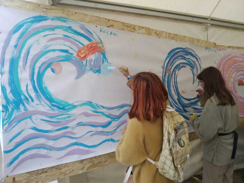 «Космос, музыка, творчество, наука. То, что внутри откликается, то и рисовали студенты на волне своих возможностей. Затем отдельные холсты соберём в один большой, и он появится на территории СевГУ как напоминание о том, насколько творческие люди учатся в нашем вузе», — рассказывает студентка Института ядерной энергии и промышленности, инициатор арт-объекта Полина Макарова.