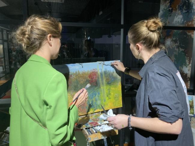 Другой частью развлекательной программы была интерактивная зона художницы Анны Мараткановой. Она вместе с гостями создавала коллективный пейзаж масляными красками, где «цветовую основу заложила мужская половина, а детализацию оставили на женщин». Картина получила название «Сладкий октябрь».
