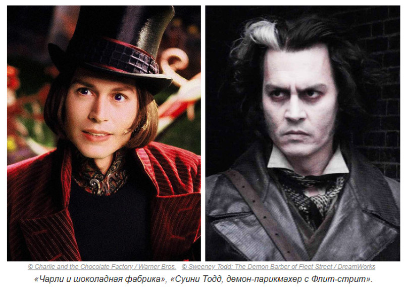 Найдя в 2003-м характер своего Воробья, Джонни Депп, кажется, решил его не отпускать. Так мир увидел похожих персонажей в «Чарли и шоколадной фабрике», в «Суини Тодд, демон-парикмахере с Флит-стрит», «Воображариуме доктора Парнаса», «Алисе в Стране чудес», «Мрачных тенях». Даже в фильмах, где у него не было сумасшедшего грима и такого же амплуа, он все равно представлялся нарочито экстравагантным — словно комик, которого тяжело воспринимать в драматической роли. Тем не менее образы были шикарные, фильмы — кассовые, а актер — всеми любим.
