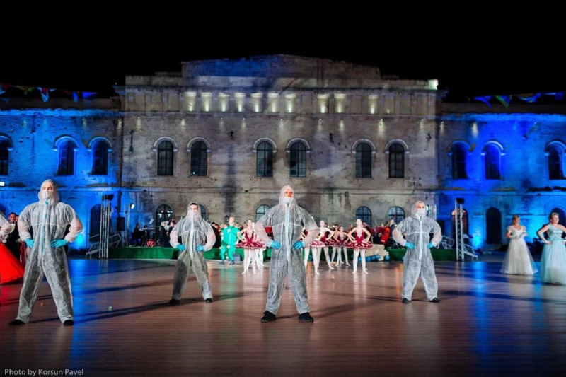 Связующей нитью такой красивой истории, конечно, стали танцы: вальс, полька, кадриль, мазурка, танго, фокстрот. Ну а музыкальное сопровождение Академического симфонического оркестра Крымской государственной филармонии под управлением Александра Долинского наполнило эту бальную сказку особой магией. Искрящийся жизнью под вечерним небом Михайловский равелин наполнялся волшебной музыкой Чайковского, Штрауса, Верди, Россини, Доницетти, Легара, Глинки, Шостаковича, Стравинского, Листова и других композиторов, известных на весь мир. Классику сменяли композиции военных лет, но не обошлось и без экспериментов – танца на злобу дня про борьбу с коронавирусом под песню Владимира Высоцкого «Утренняя гимнастика».