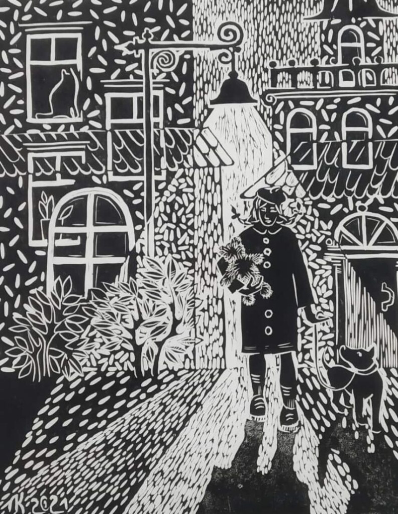 «Офорт легче исправить. Брак можно заполировать и превратить обратно в белый цвет. А в высокой печати, если вырезал — вернуться на шаг назад нельзя, — рассказывает Владимир Новиков. — Когда мы трудимся над чёрно-белой линогравюрой, работаем с пустотой — вырезаем то, что будет белым. Нужно думать наоборот. Когда я хочу поставить точку — должен вырезать всё вокруг. Таким образом, мы начинаем думать не чёрным на белом, а белым на чёрном».