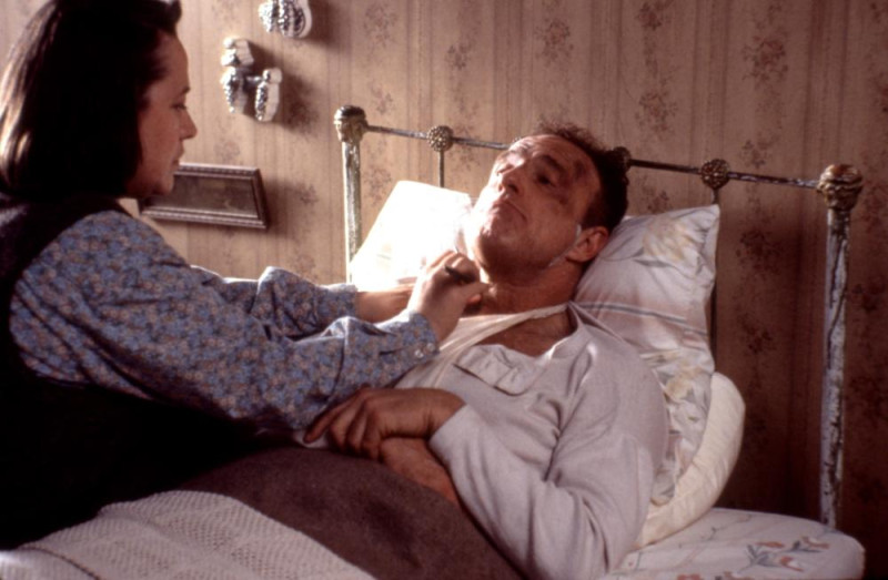 Как говорила красотка Вивьен Уорд, «большая ошибка, гигантская». Энни выясняет, что Шелдон убил её любимую героиню Мизери, и впадает в ярость. Отныне писатель — её пленник, чья задача — переписать книгу так, как нравится Энни. Каан и Бэйтс выдают невероятно напряженную и душераздирающую игру, и после просмотра вы почувствуете: домашний диван, плед и кино не такая уж горькая судьба по сравнению с историей творца, которому безумная фанатка ломает ноги ради хеппи-энда в книжке. Но какой урок можно извлечь из этого (помимо того что надо опасаться самых яростных своих последователей)? В любой грустной ситуации помните: есть те, кому гораздо хуже.